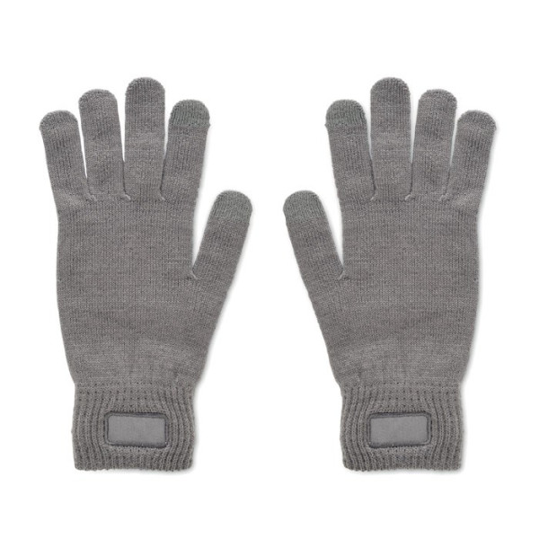 Gestrickte Handschuhe aus weichem, elastischem RPET-Polyester mit Patch.