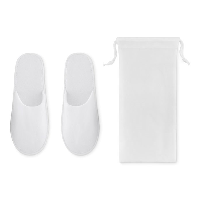Hotelslipper aus Polyester. Ideal für den Hotelbereich. Lieferung im Non Woven Beutel. Universalgröße: EUR Größe 43 - 44.